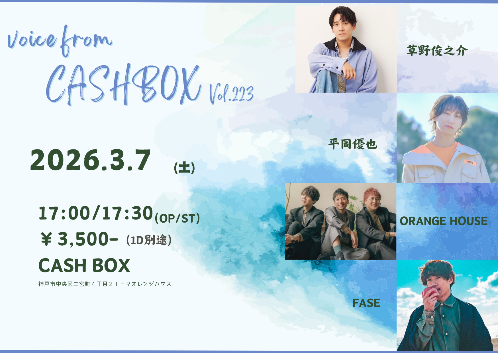 前売り¥4000(別途Drink代)当日4,500